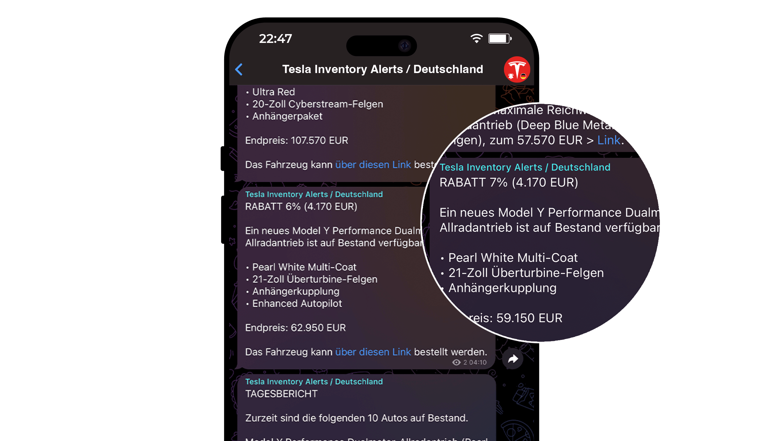 A Telegram bot sending periodic notifications every time a discounted vehicle is added into the Tesla inventory. Daily reports...